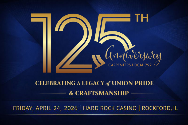Hard Rock Casino 7801 E State Street, Rockford, IL, United StatesCarpenters Local 792 is celebrating its 125th anniversary – a significant milestone that reflects our collective achievements and commitment to our members, our contractors, and our community. We invite you and a guest to join us for an evening of celebration, camaraderie, and remembrance of our shared journey. Schedule of Events: Social Hour: 5:30 PM […]